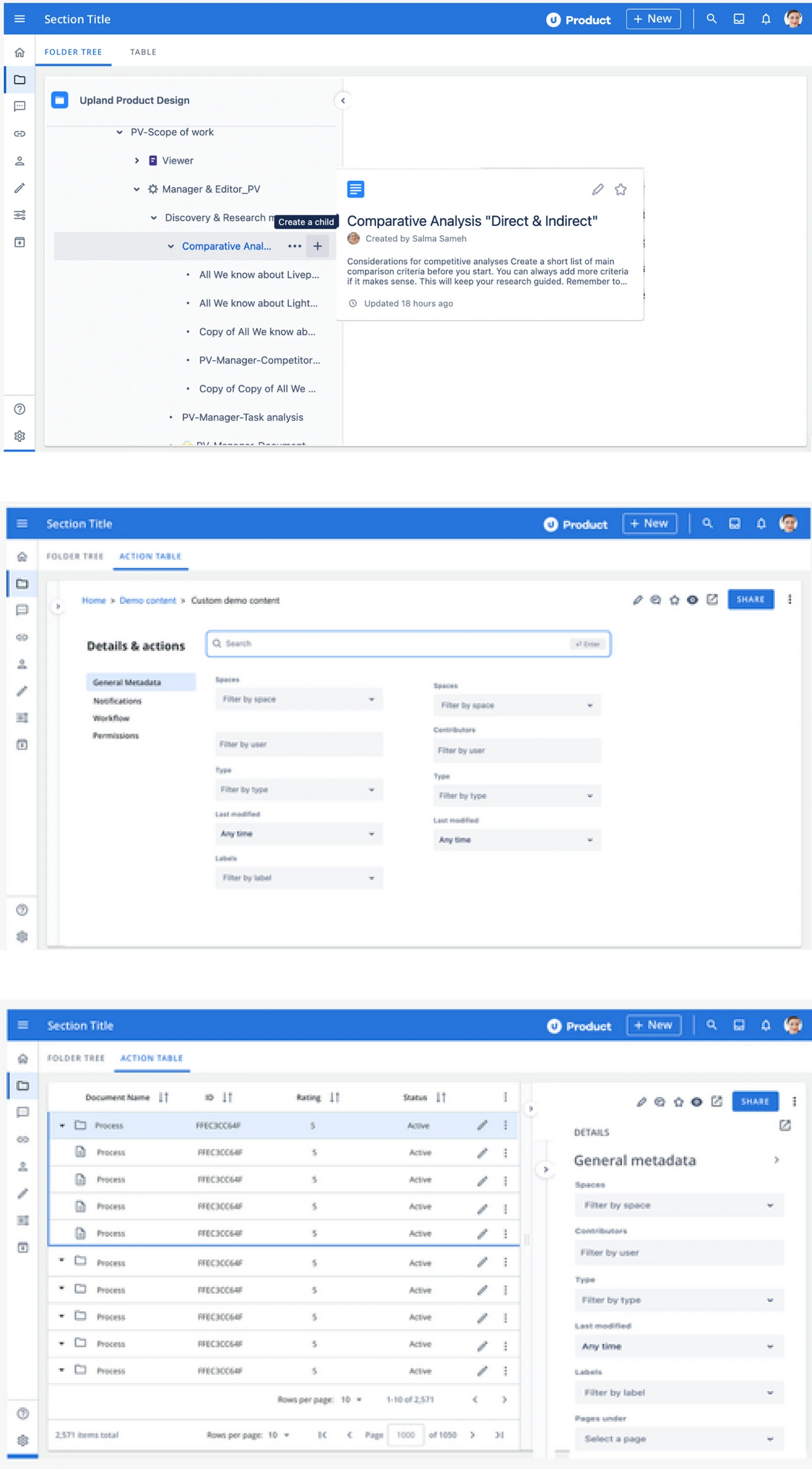 We initially aimed to simplify the layout by creating two separate tabs: one for the Folder Tree and another for the Content Table. This approach was intended to accommodate various scenarios and use cases.