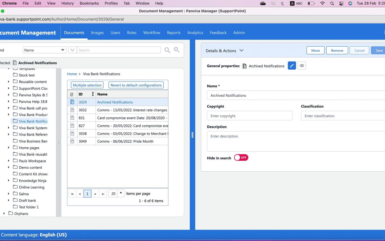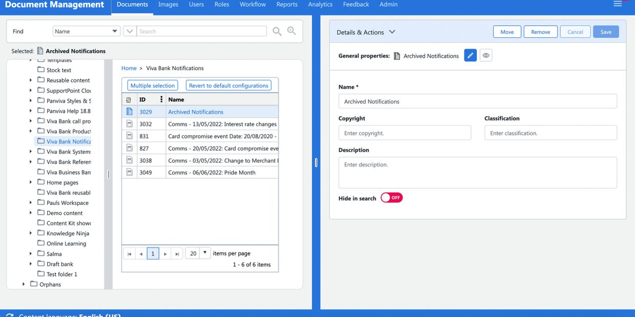 The features that were redesigned to achieve our goal of a usable and accessible document management system include: