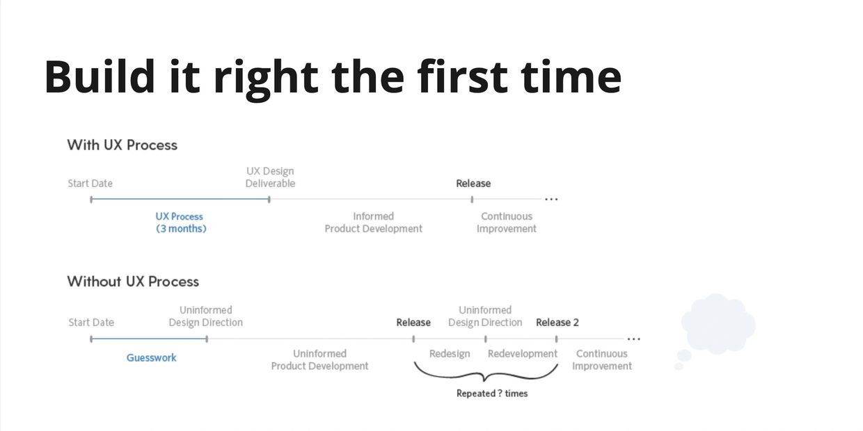 During workshops and meetings, I explained that dedicating time to user research and understanding user pain points upfront significantly reduces the time and costs associated with redesigning a product after its release. I highlighted that making adjustments during the design phase is far more cost-effective than implementing changes after the product has been coded.