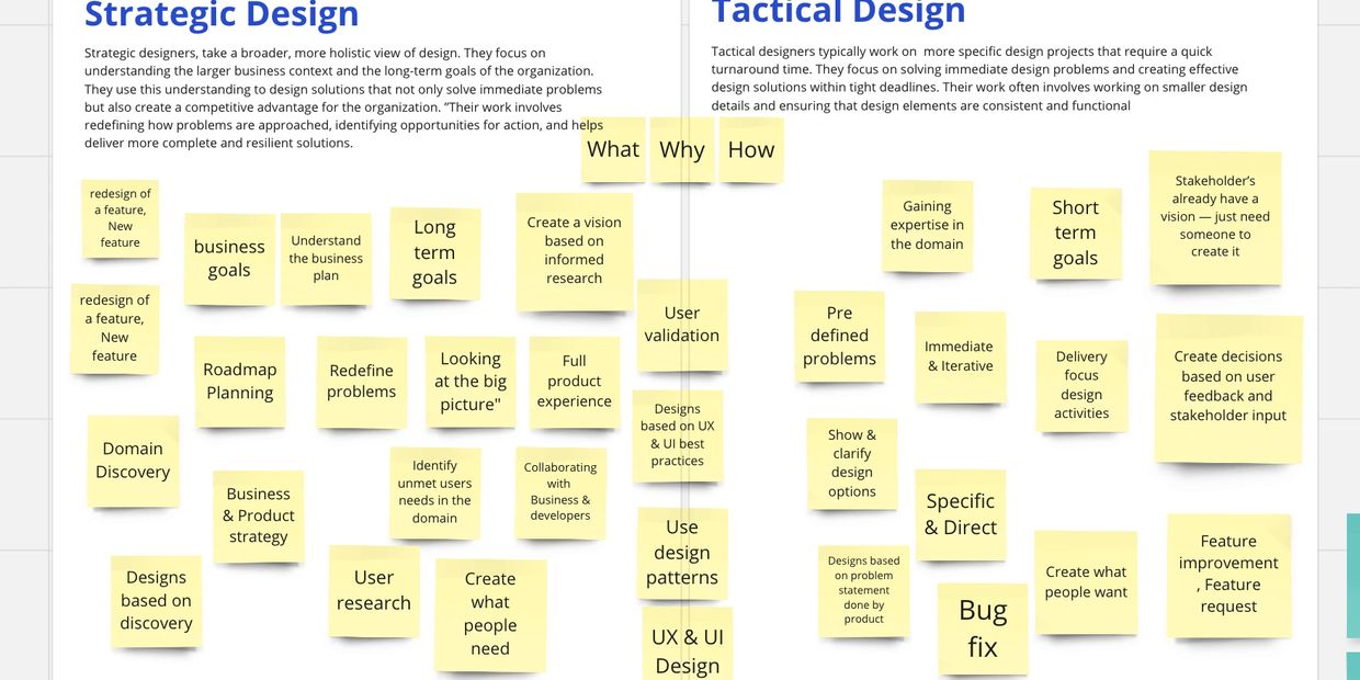 To address this, I conducted an analysis to clearly differentiate between tactical and strategic design support. This was necessary to align their expectations and guide them in understanding the timeframes and value associated with each approach.